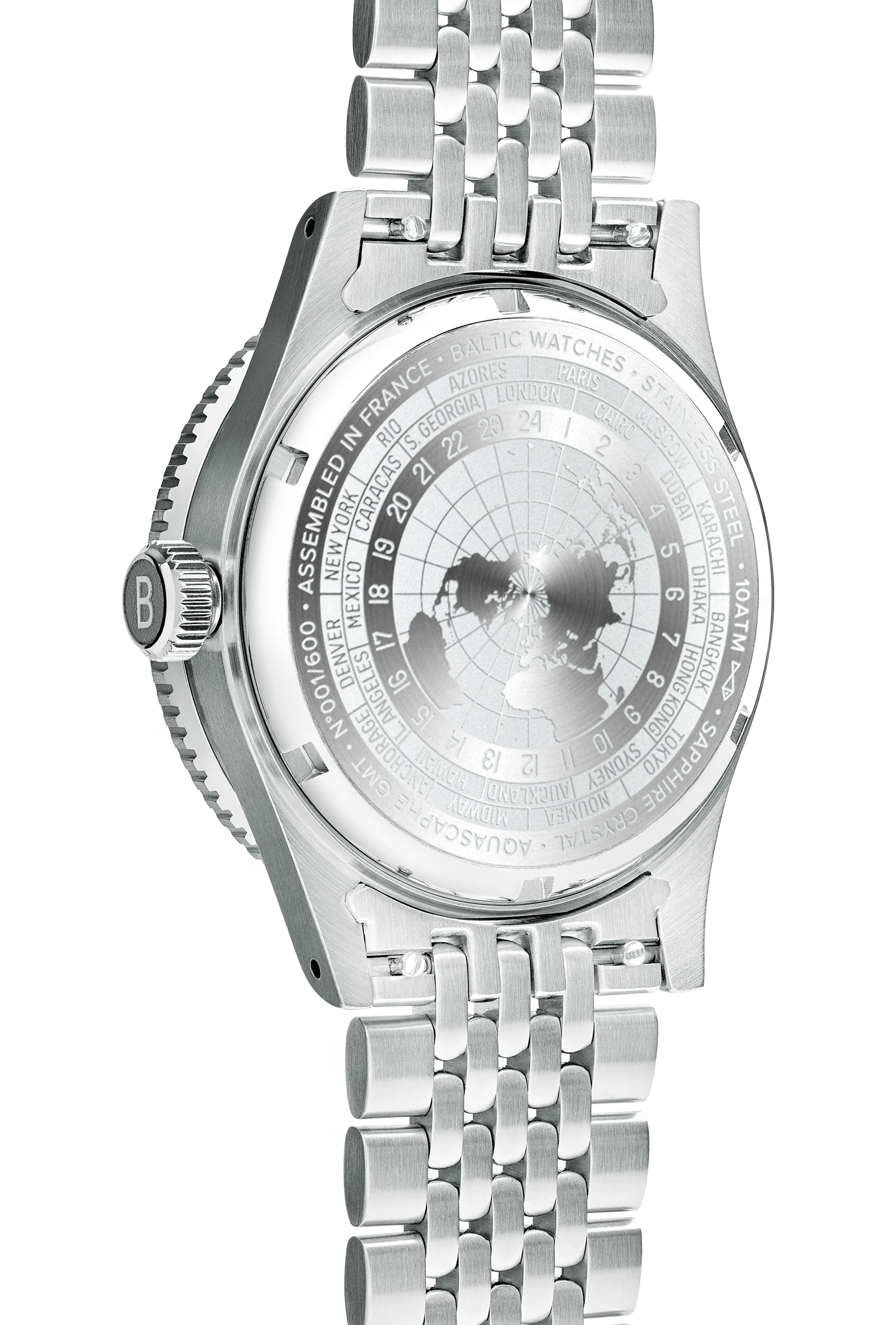 Each caseback features an engraving that draws inspiration from the various time zones found on earth. Two bracelets are available for choosing the Aquascaphe: a metal Beads of Rice bracelet or as shown here the rubber Tropic strap. As the lugs are drilled switching your strap only takes a few seconds.